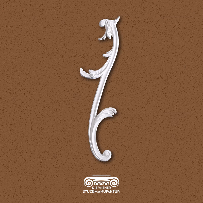 Stuck Barock 540/150mm aus Gips, dieses Element ist auch spiegelverkehrt mit der Artikelnummer B0602-L bei uns erhältlich.