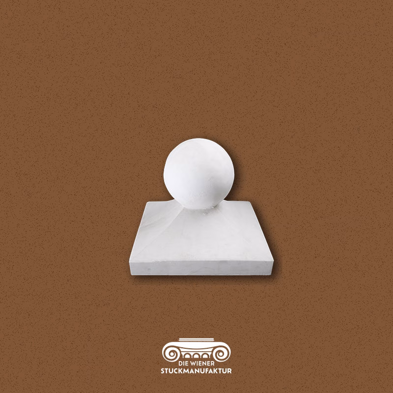 Stuck Kugel d=160 h=250 mit Grundplatte 310/310mm aus Gips. Dieses Produkt lässt sich hervorragend mit anderen Dekorelementen kombinieren.
