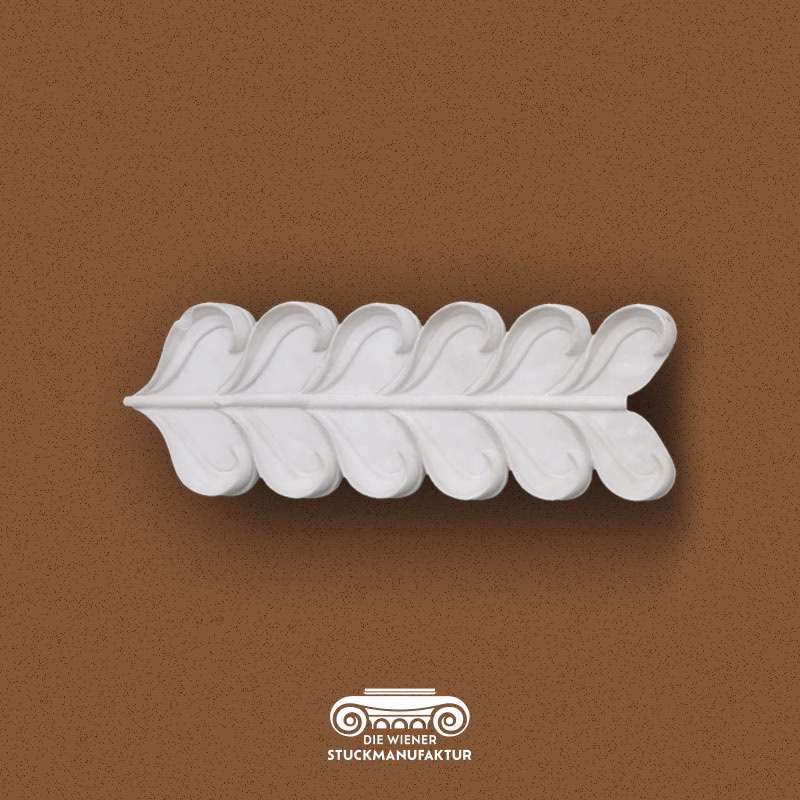 Stuck Blätterzopf 6 teilig 175/500mm aus Gips. Zu diesem Blätterzopf, haben wir noch weitere passende Stuckelemente dieser Kombination in unserem Sortiment. Es lässt sich aber auch hervorragend mit anderen Stuck Dekorelementen kombinieren.