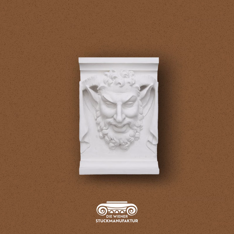 Stuck Teufelskopf 330/225/100mm aus Gips. Dieses Produkt lässt sich hervorragend mit anderen Stuck Dekorelementen kombinieren.