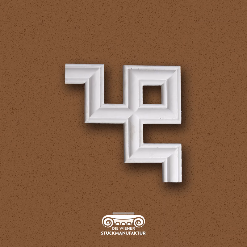 Stuck Ecke 300/300mm zu L0023-D aus Gips. Zu diesem Eckelement haben wir auch die passende Leiste und eine andere Ecke zur Gestaltung von Deckenspiegeln und Wandfeldern in unserem Sortiment.