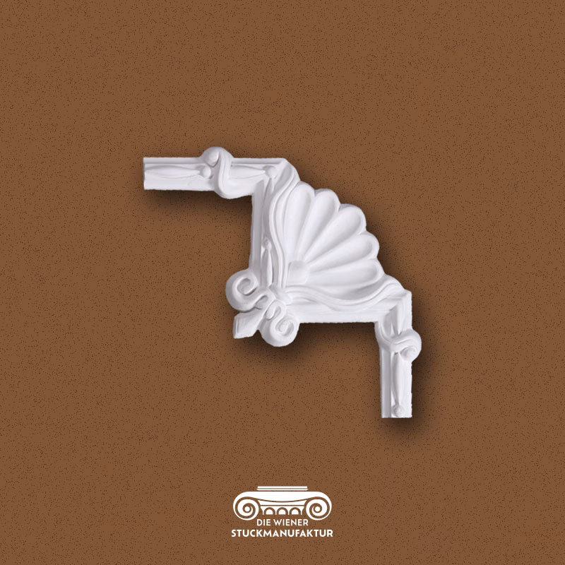 Stuck Ecke 205/205mm zu L0052-B aus Gips. Zu diesem Eckelement haben wir auch die passende Leiste und eine andere Ecke zur Gestaltung von Deckenspiegeln und Wandfeldern in unserem Sortiment.