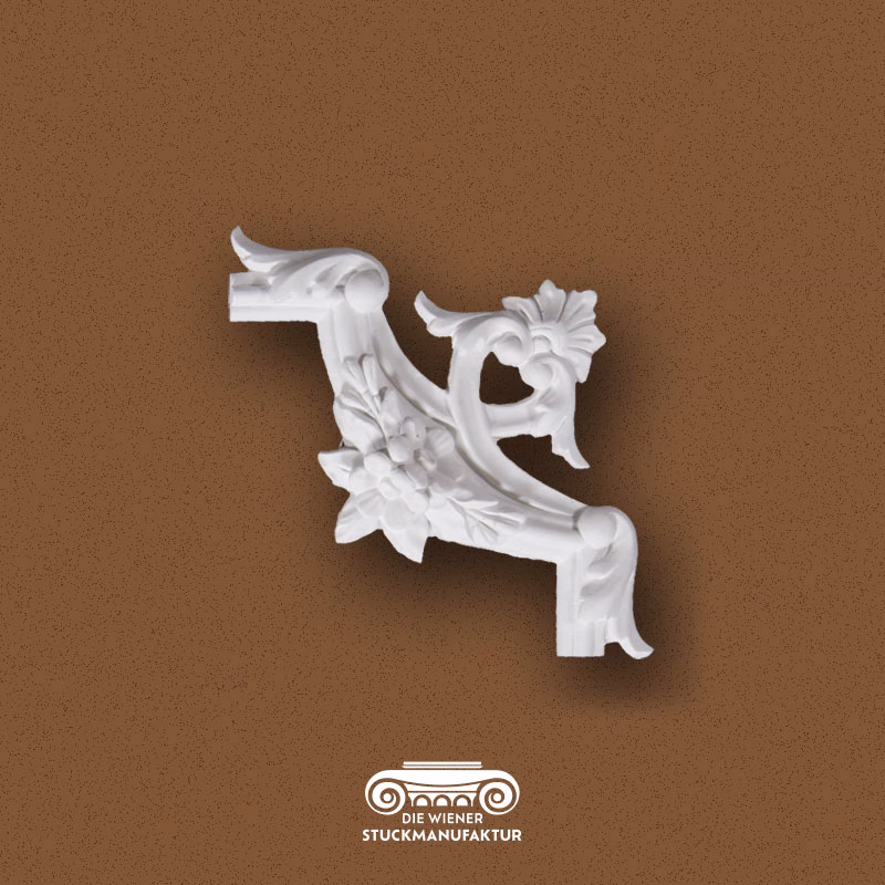 Stuck Ecke 175/175mm zu L0062-B aus Gips. Zu diesem Eckelement haben wir auch die passende Leiste und andere Ecken zur Gestaltung von Deckenspiegeln und Wandfeldern in unserem Sortiment.