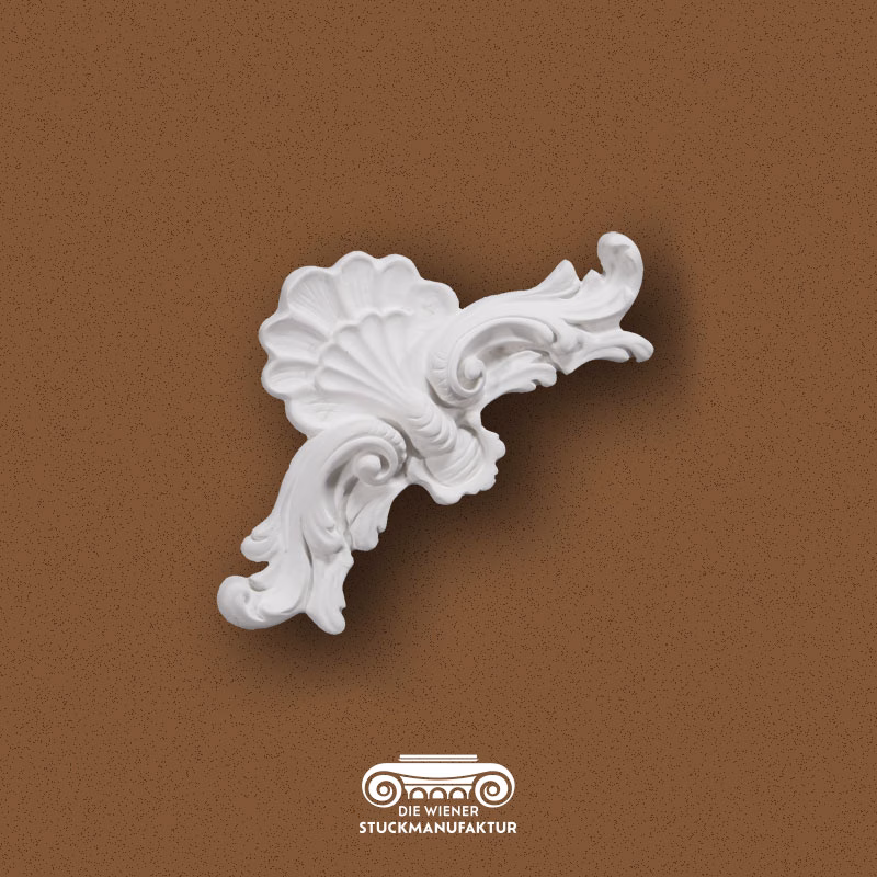 Stuck Freie Dekorecke 240/240mm aus Gips. Dieses Stuck Eckelement lässt sich hervorragend mit anderen Stuckelementen aus unserem Sortiment kombinieren.