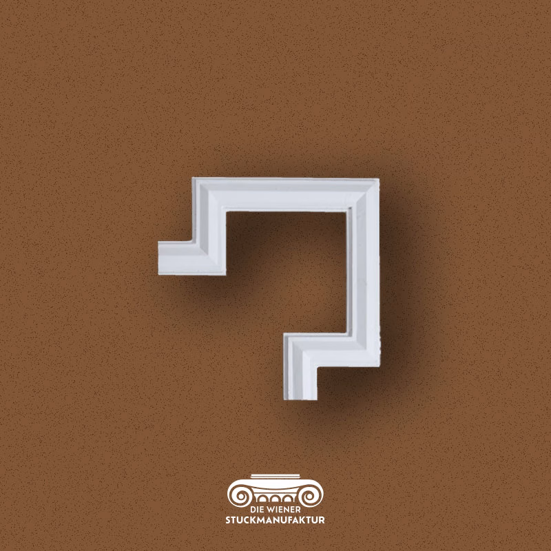 Stuck Ecke 235/235mm zu L3082 aus Gips. Zu diesem Eckelement haben wir auch die passende Leiste zur Gestaltung von Deckenspiegeln und Wandfeldern in unserem Sortiment.