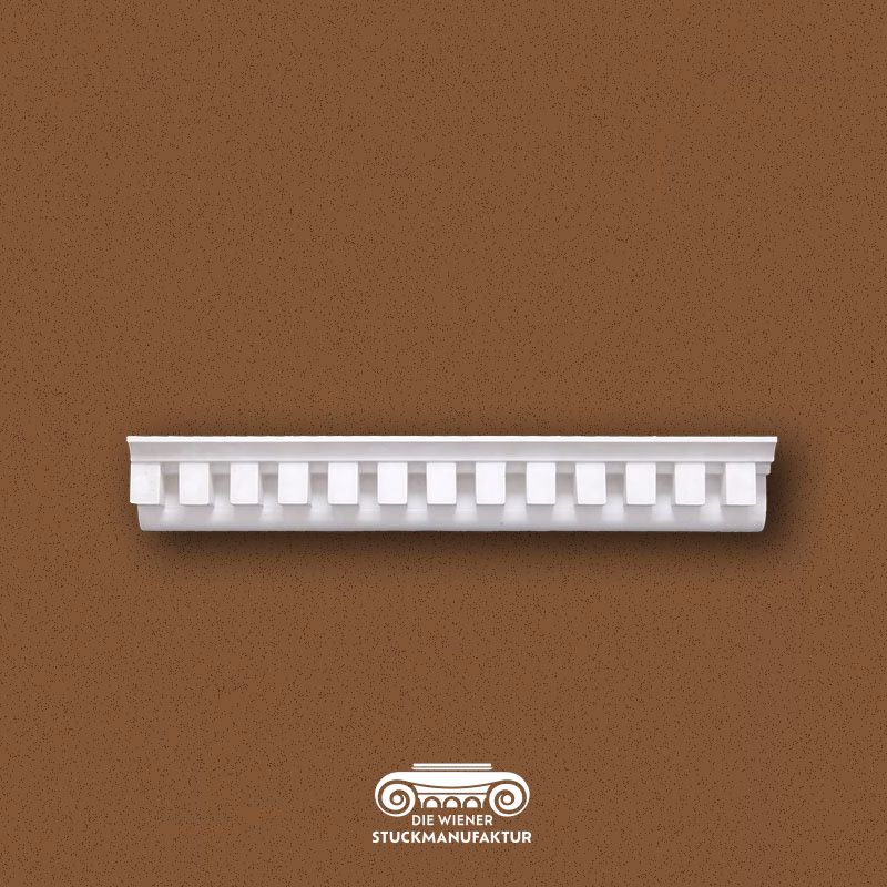 Aussenstuck Zahnschnitt 70/495/58mm aus beschichtetem EPS oder Beton, dieses Produkt ist auch in weiteren ähnlichen Ausführungen bei uns erhältlich.