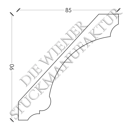 Stuck Gesimse 90/85mm Rokoko aus Gips. Dieses Produkt lässt sich hervorragend mit anderen Stuck Elementen aus unserem Sortiment kombinieren.