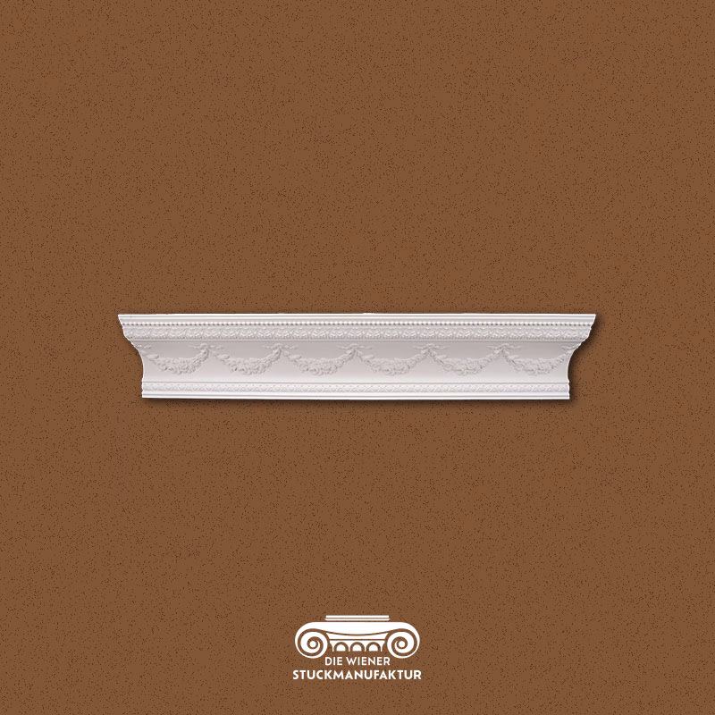 Stuck Gesimse 146/290mm Blumengirlande aus Gips. Dieses Produkt lässt sich hervorragend mit anderen Stuck Elementen aus unserem Sortiment kombinieren.