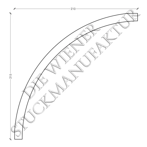 Stuck Gesimse 215/210mm glatt aus Gips. Dieses Produkt ist in verschiedenen Größen erhältlich und lässt sich hervorragend mit anderen Stuck Elementen aus unserem Sortiment kombinieren.