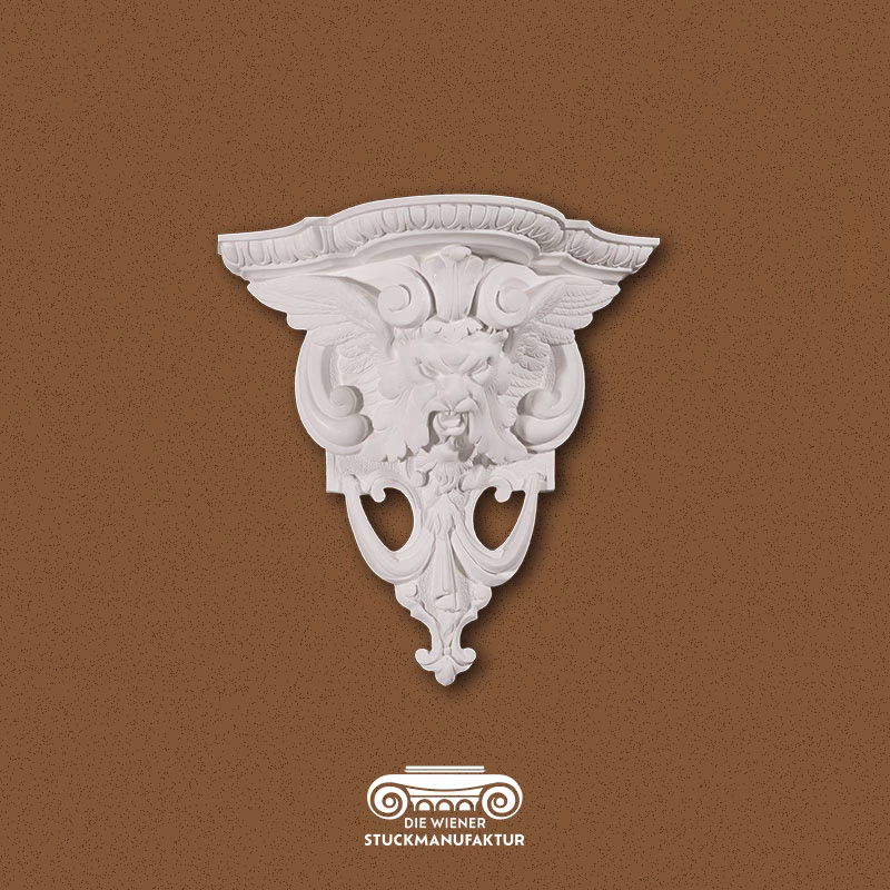 Stuck Konsole Fauna 320/320/160mm aus Gips. Konsolen dienen zur optischen Unterstützung von Unterzügen, Wandregalen, Waschtischen etc und verleihen Ihrem Heim das gewisse Etwas.