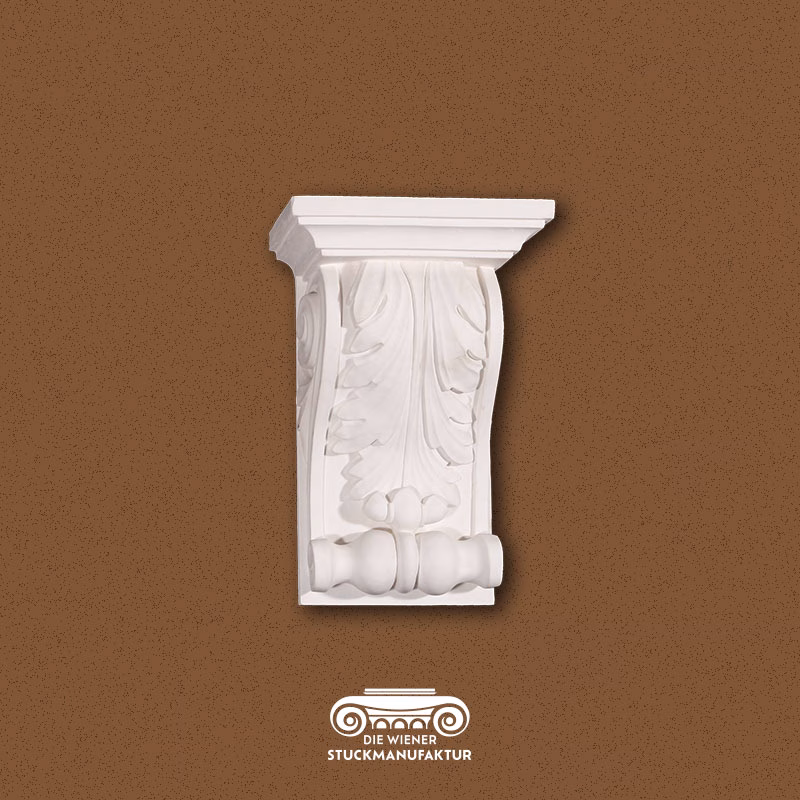 Stuck Konsole Akanthus 275/180/130mm aus Gips. Konsolen dienen zur optischen Unterstützung von Unterzügen, Wandregalen, Waschtischen etc und verleihen Ihrem Heim das gewisse Etwas.