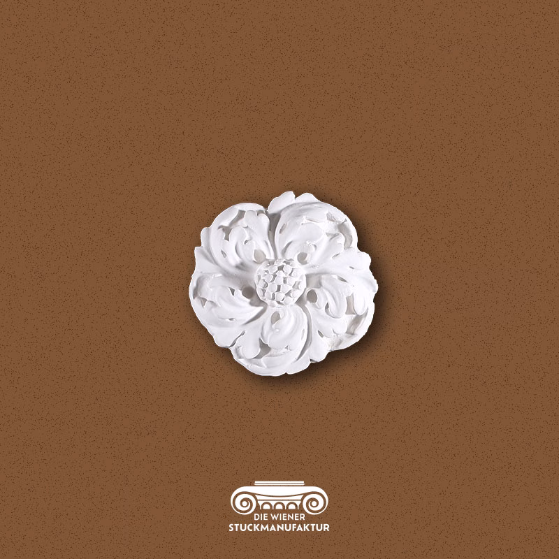 Stuck Knopf Blätter 145mm aus Gips. Stuck Knöpfe sind vielseitig einsetzbar. Sie können ergänzend bei der Gestaltung von Wandfeldern, als zentrales Element einer Szene bis hin zum einfachen Verdecken von unschönen Stellen an Wand/Decke wie z.B. Kabelauslässe, kleine Fehler etc. dienen. Hierbei sind der Fantasie keine Grenzen gesetzt.