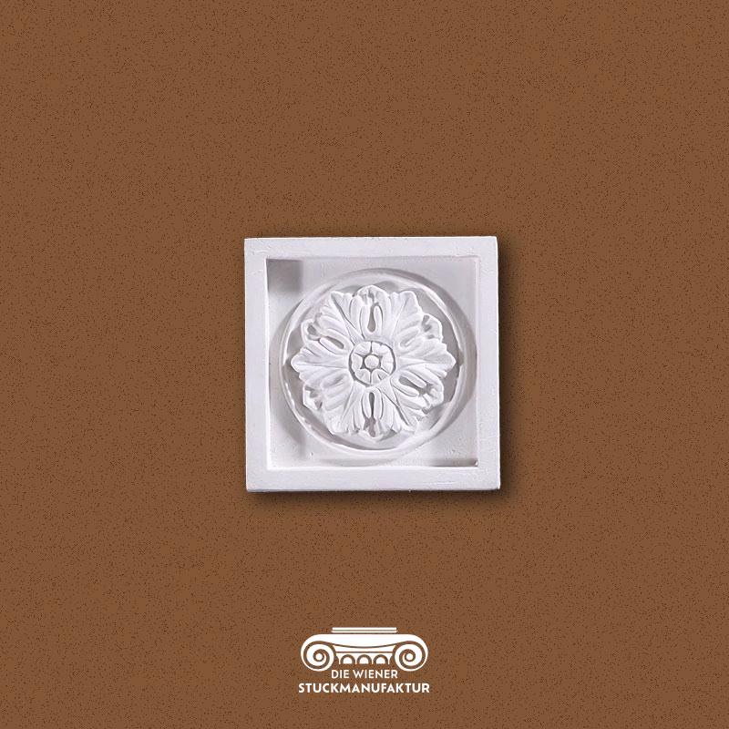 Stuck Knopf „Corso“ 95/95mm aus Gips. Stuck Knöpfe sind vielseitig einsetzbar. Sie können ergänzend bei der Gestaltung von Wandfeldern, als zentrales Element einer Szene bis hin zum einfachen Verdecken von unschönen Stellen an Wand/Decke wie z.B. Kabelauslässe, kleine Fehler etc. dienen. Hierbei sind der Fantasie keine Grenzen gesetzt.