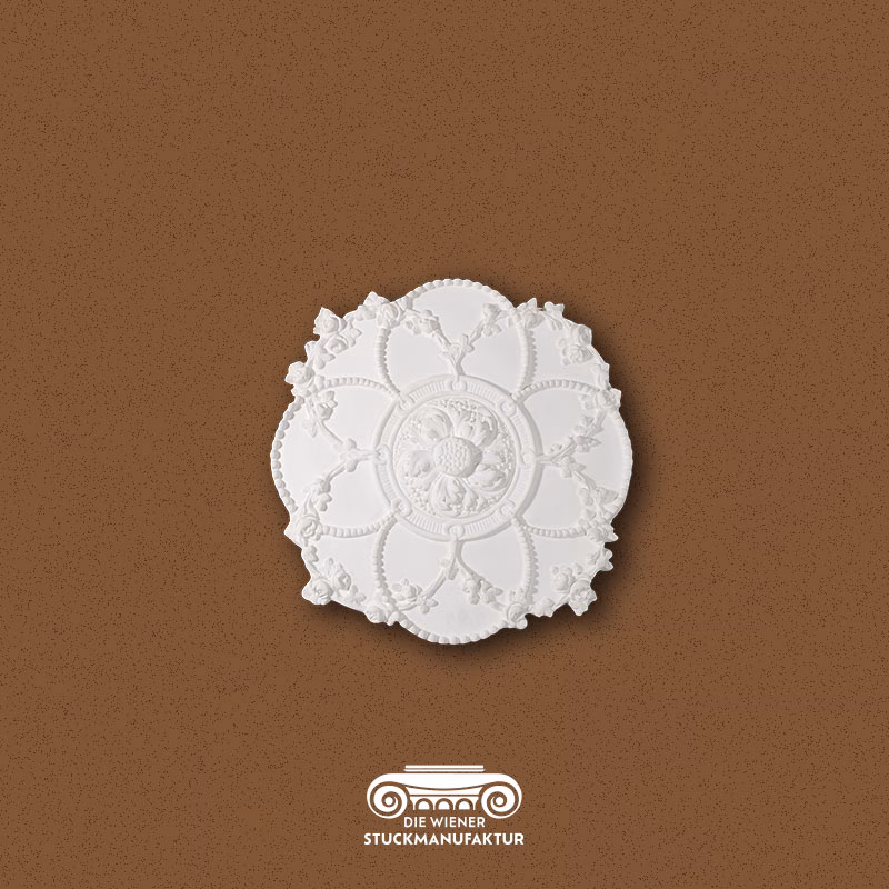 Eine Rosette stellt die Krönung jeder Stuckdecke dar, sie bildet mit oder ohne Luster das Zentrum eines Raumes.
