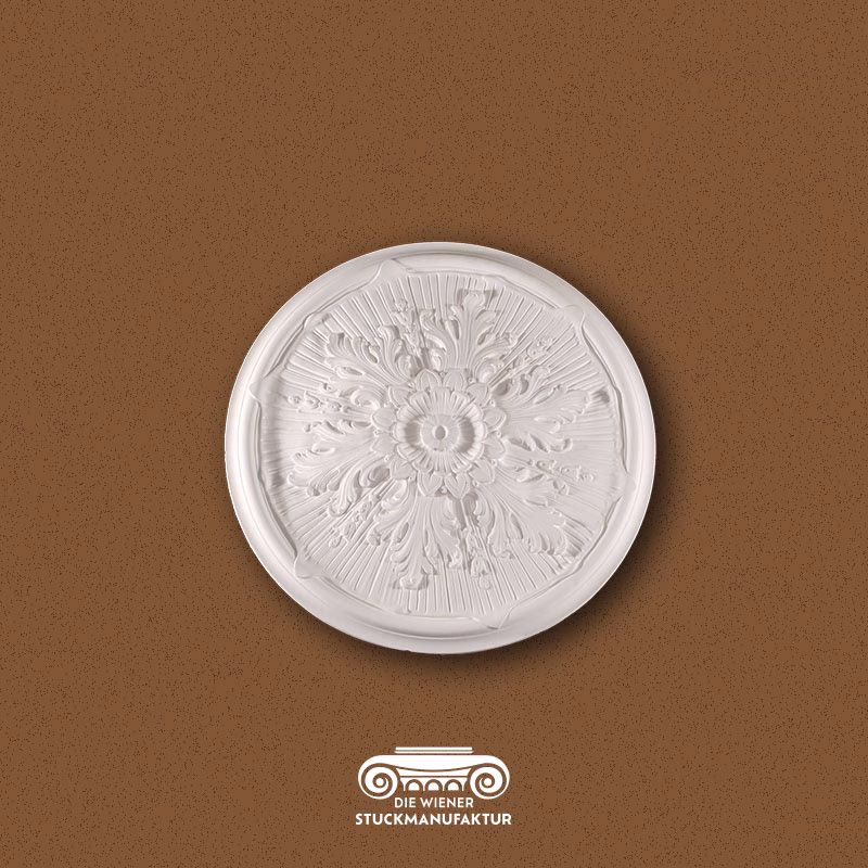 Eine Rosette stellt die Krönung jeder Stuckdecke dar, sie bildet mit oder ohne Luster das Zentrum eines Raumes.