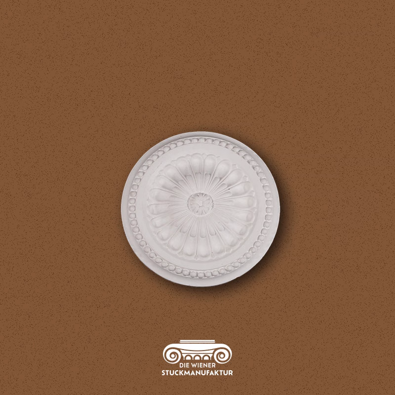 Eine Rosette stellt die Krönung jeder Stuckdecke dar, sie bildet mit oder ohne Luster das Zentrum eines Raumes.