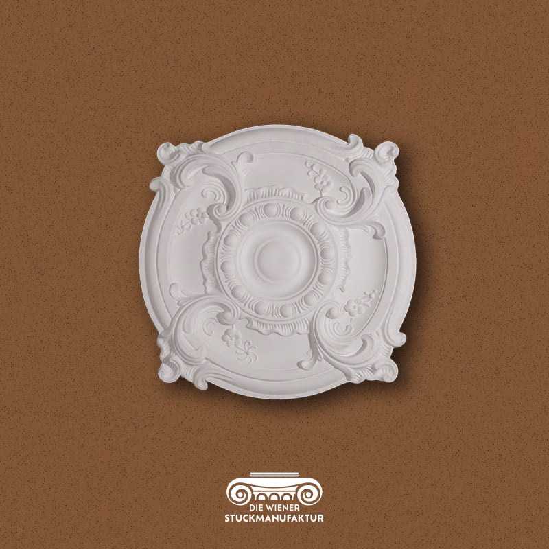 Eine Rosette stellt die Krönung jeder Stuckdecke dar, sie bildet mit oder ohne Luster das Zentrum eines Raumes.