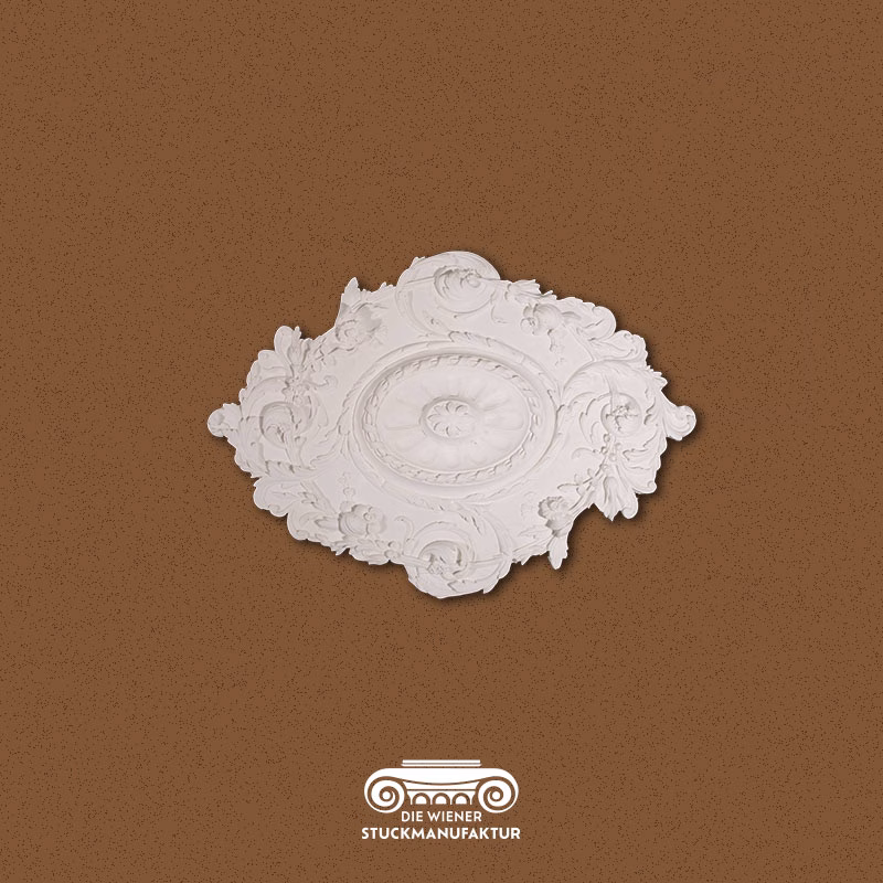 Stuck Rosette 590/830mm Akanthus und Blume aus Gips.