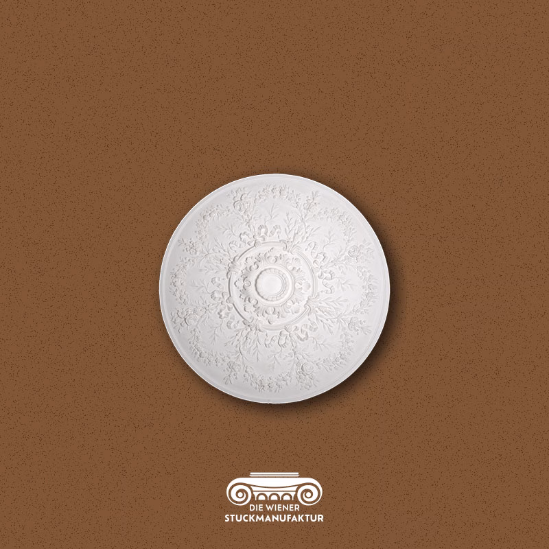 Eine Rosette stellt die Krönung jeder Stuckdecke dar, sie bildet mit oder ohne Luster das Zentrum eines Raumes.