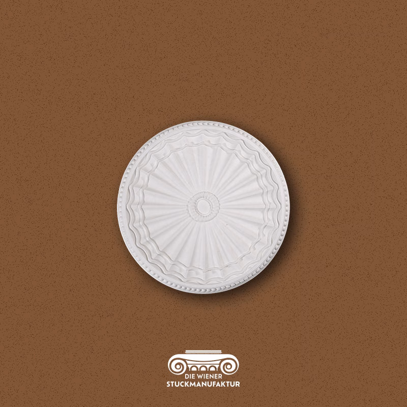 Eine Rosette stellt die Krönung jeder Stuckdecke dar, sie bildet mit oder ohne Luster das Zentrum eines Raumes.