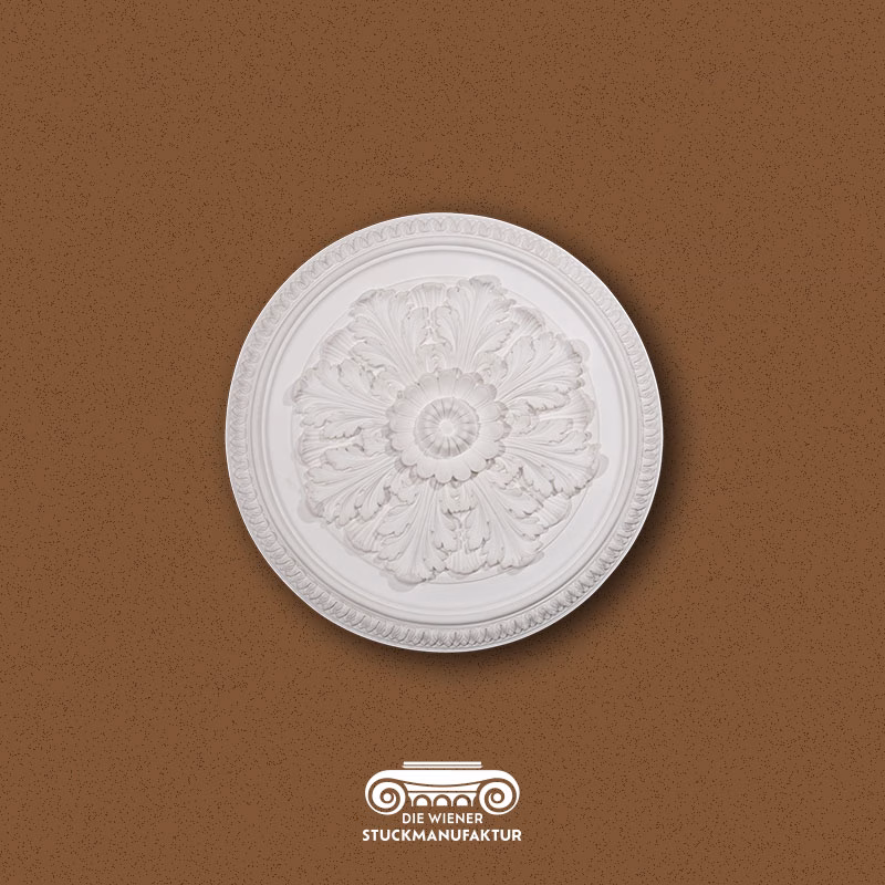 Eine Rosette stellt die Krönung jeder Stuckdecke dar, sie bildet mit oder ohne Luster das Zentrum eines Raumes.