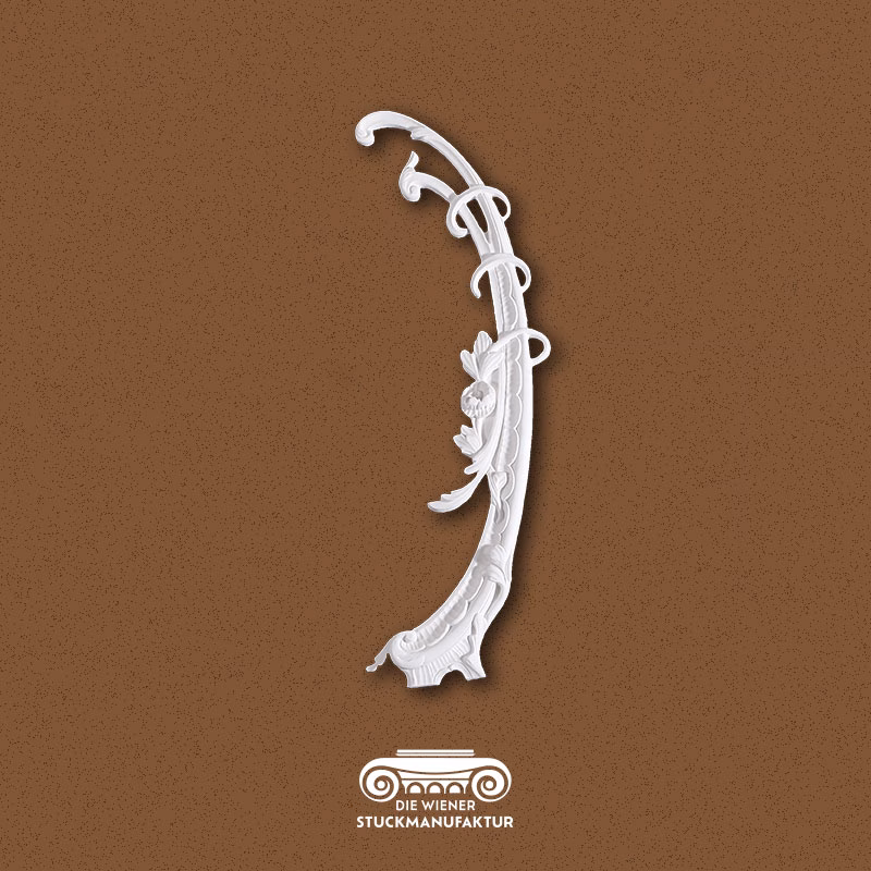 Stuck Barock 430/140mm aus Gips, dieses Element ist auch spiegelverkehrt mit der Artikelnummer B0608 bei uns erhältlich.