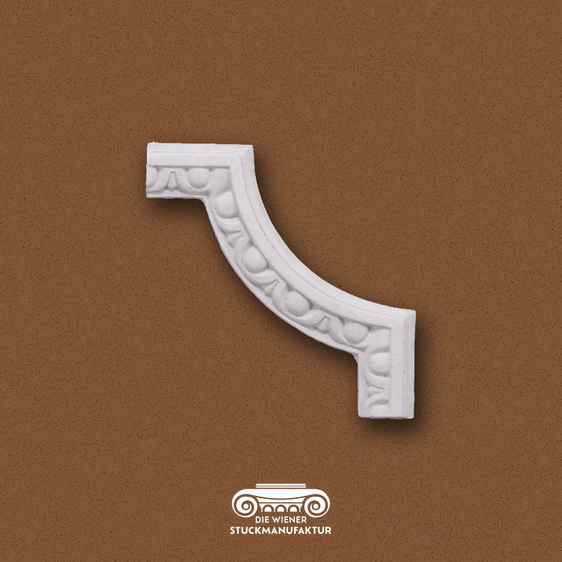 Stuck Ecke 135/135mm zu L0306-D aus Gips. Zu diesem Eckelement haben wir auch die passende Leiste und eine weitere Ecke zur Gestaltung von Deckenspiegeln und Wandfeldern in unserem Sortiment.