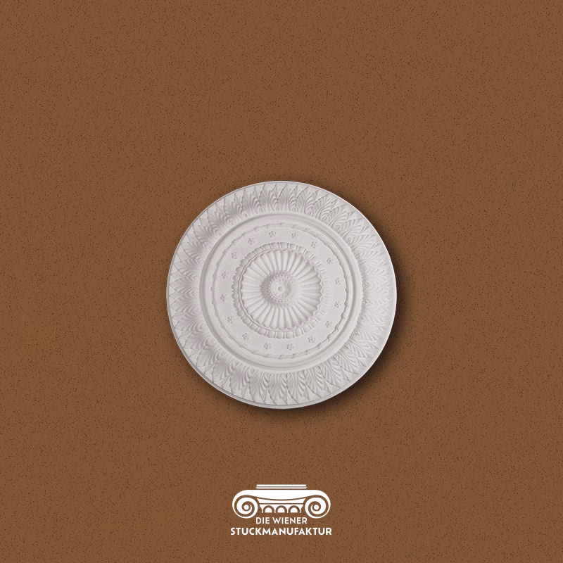 Eine Rosette stellt die Krönung jeder Stuckdecke dar, sie bildet mit oder ohne Luster das Zentrum eines Raumes.