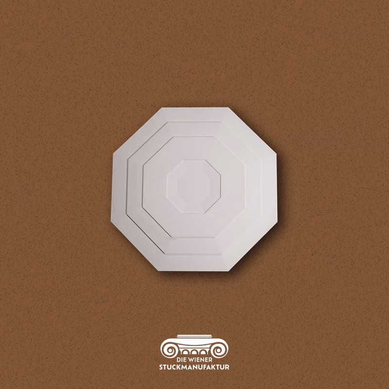 Eine Rosette stellt die Krönung jeder Stuckdecke dar, sie bildet mit oder ohne Luster das Zentrum eines Raumes.