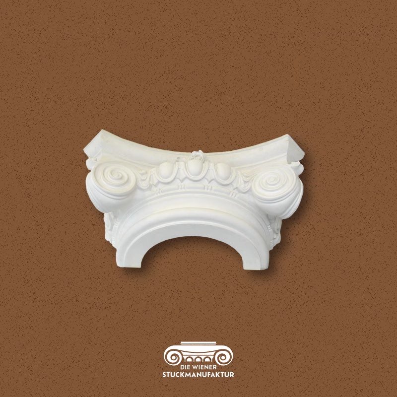 Stuck Ionisches Kapitell halb 252/700/355mm aus Gips.